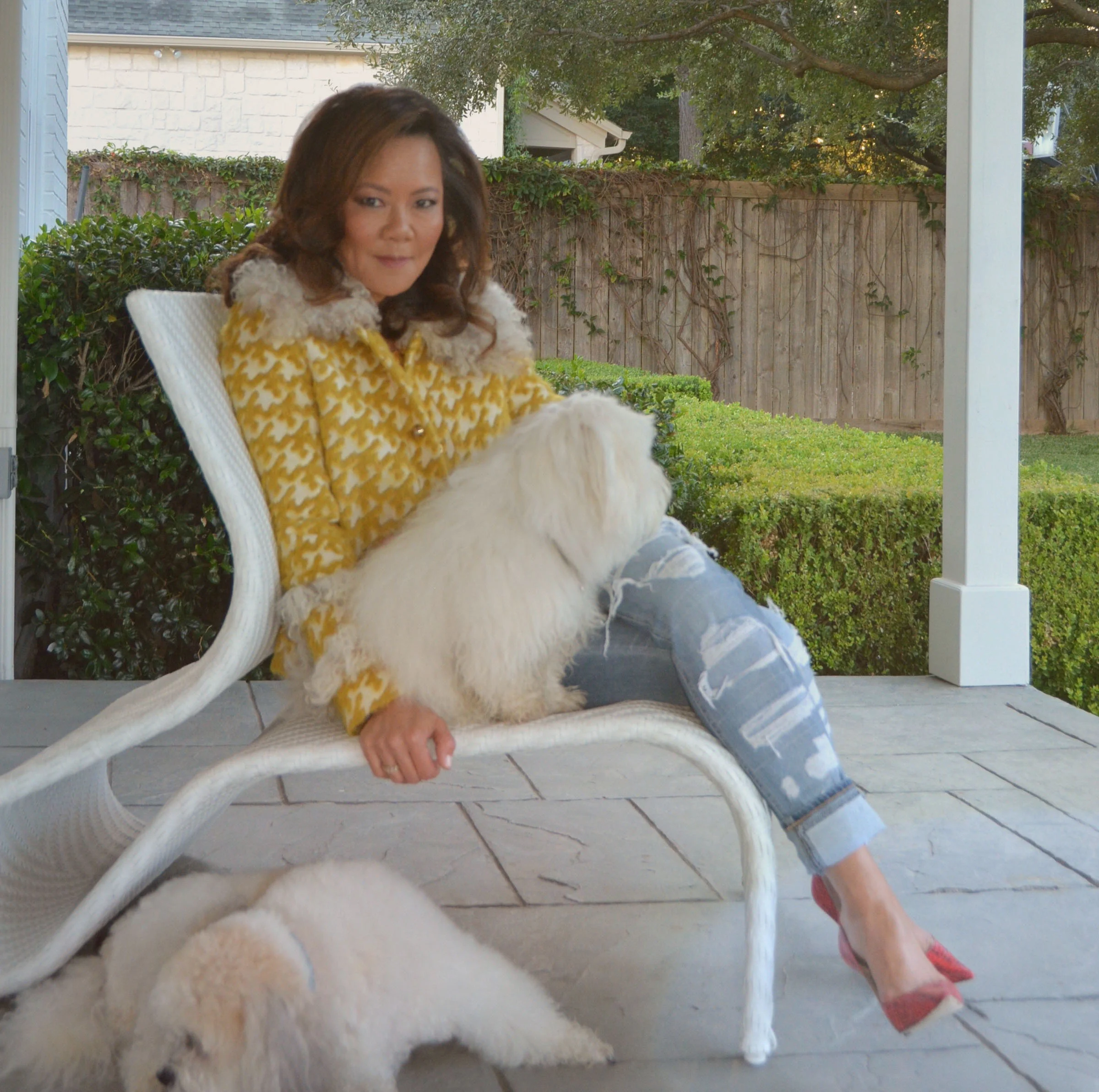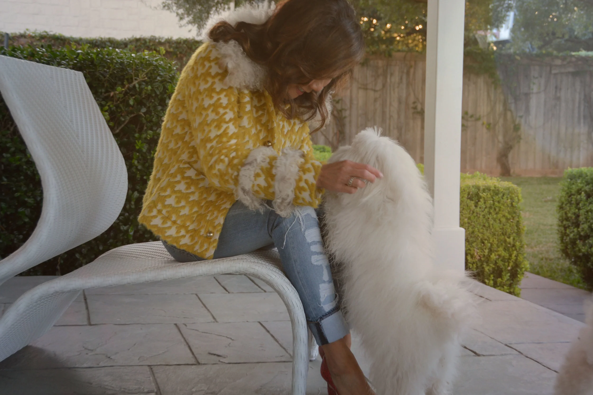 I love the way each of these pieces can translate outfits by making bold statements or anchoring a look, whether it be a fun daytime event or evening by tweaking. This particular weekend was spent in Dallas juggling entertaining at home along with social commitments that made for complicated timing and scheduling. I'm able to transition the shoes with an evening look seamlessly and the jacket will also be paired with pieces to wear to office events or daytime looks.