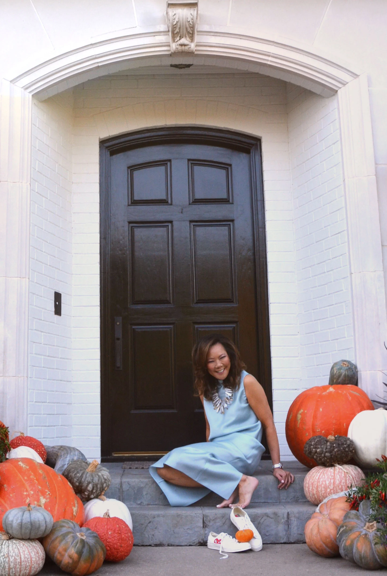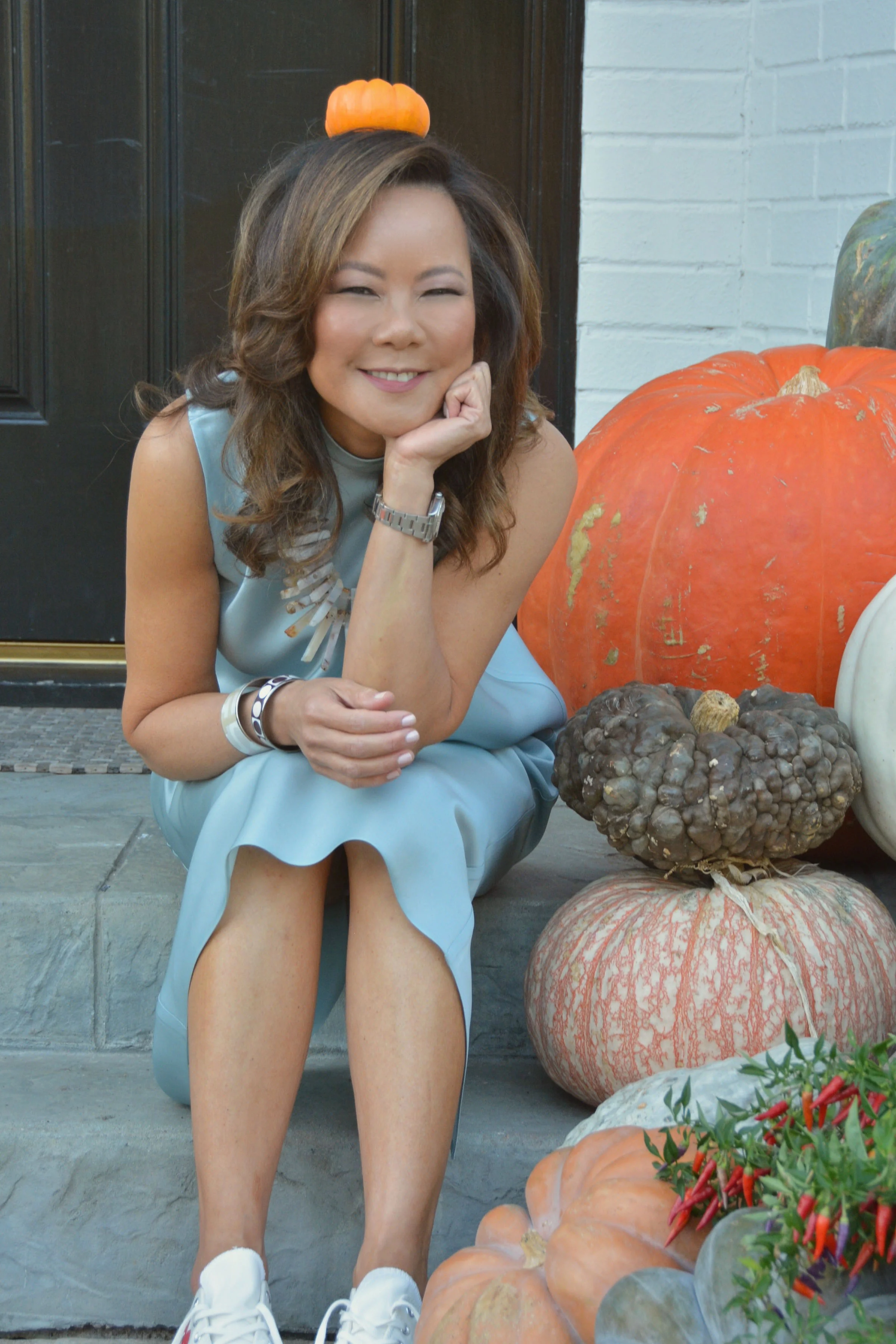While decorating my home for Autumn, I got adventurous with colors and unlikely combinations. The sleeveless silk midi dress in teal by The Row played off all of the oranges, golds and browns so wonderfully and transitioned from day into night seamlessly. During the day, I paired it with the fun Converse/Commes Des Garcon tennis shoes and for evening it wears beautifully with almost any bootie, pump or sandal. I will certainly pack this for both business and pleasure trips for its versatility and chic lines. Bracelets, and fun accessories can transform this dress into a look for almost any time of day or night.