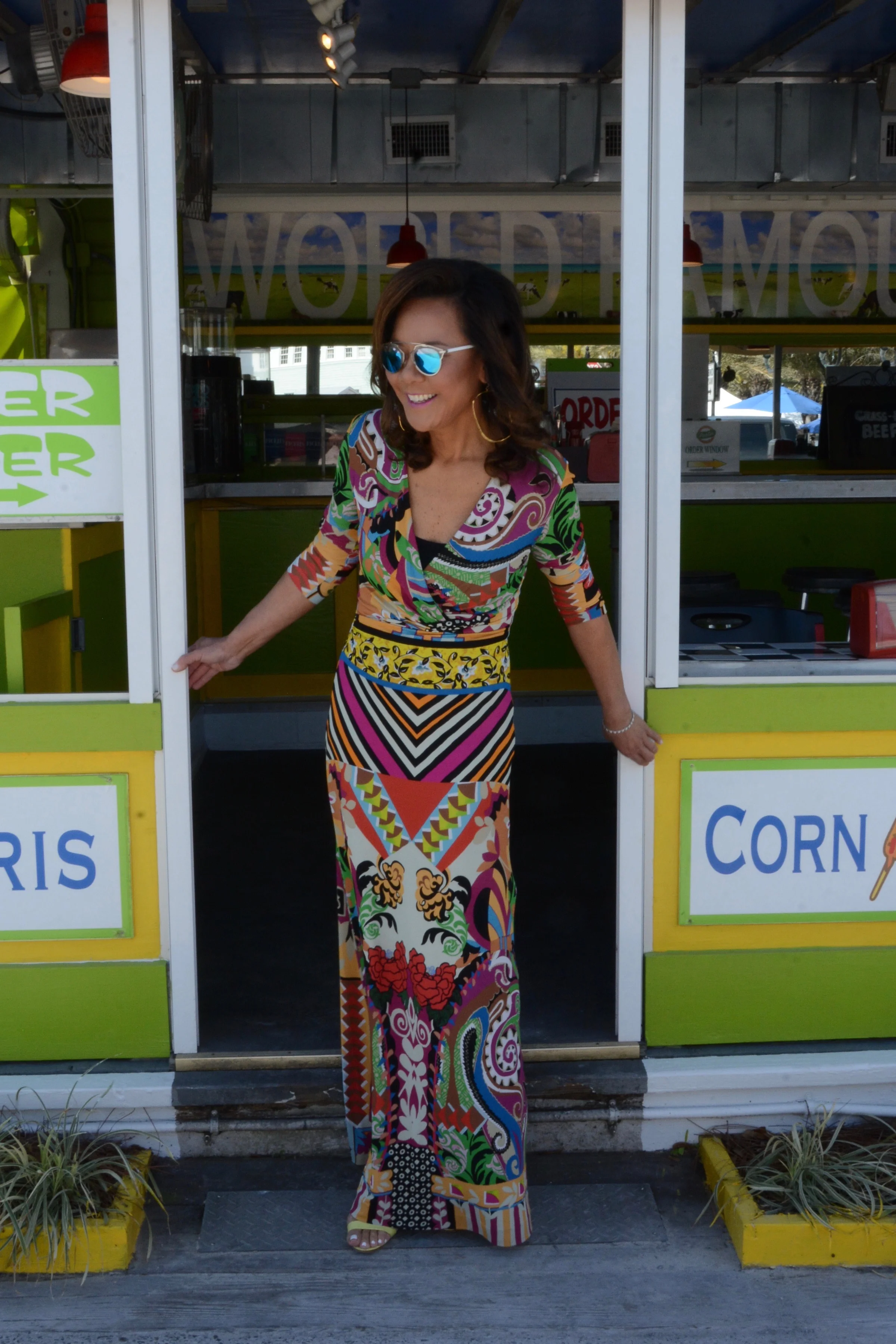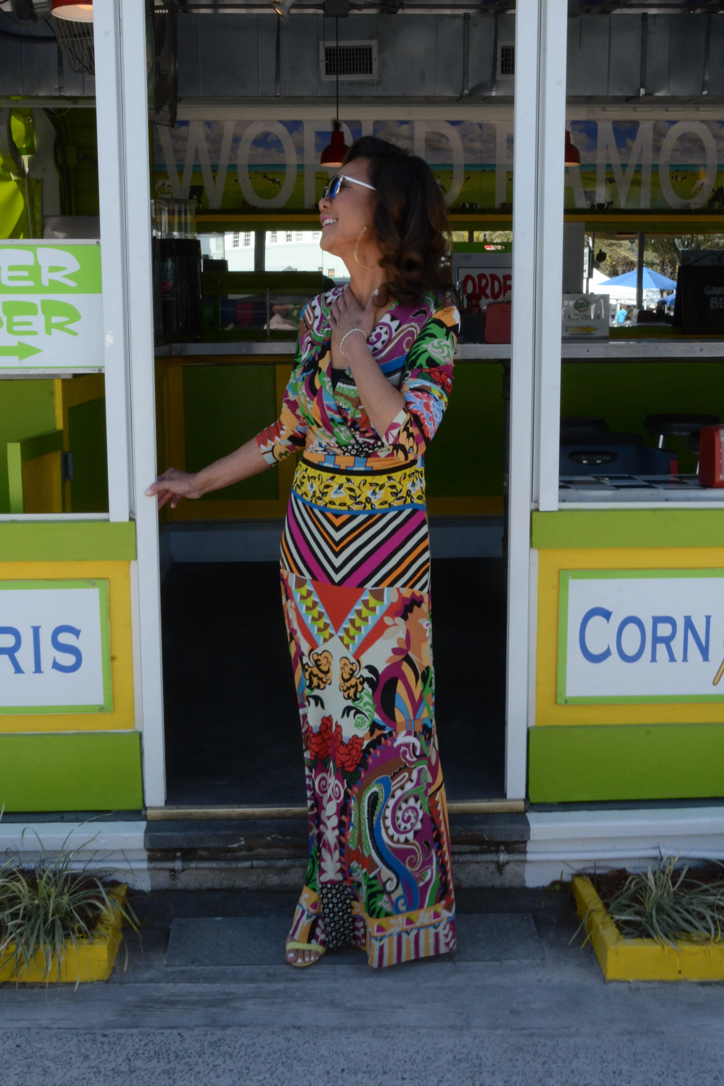 I fell in love with this stretch knit multi-colored print maxi dress by Etro for a lot of reasons. The fabulous colors and print make it versatile to wear day or night and the long fitted silhouette and ruching at the waist compliment most body types. I paired this with yellow Manolo Blahnik Chaos Snakeskin Ankle-strap Sandals and an orange bag by VBH. This particular dress is no longer available, but I'm listing other maxi dresses below that can be styled similarly! xo Kathleen