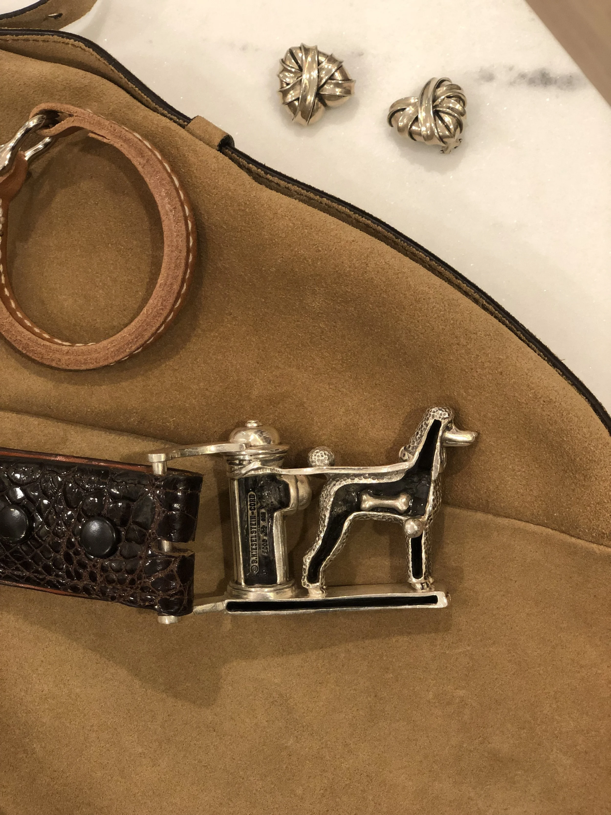 My bag is a vintage Yves St Laurent with an antler handle that I’ve had for years. While it’s sadly showing its age, I cannot retire it just yet……it’s just such a workhorse!